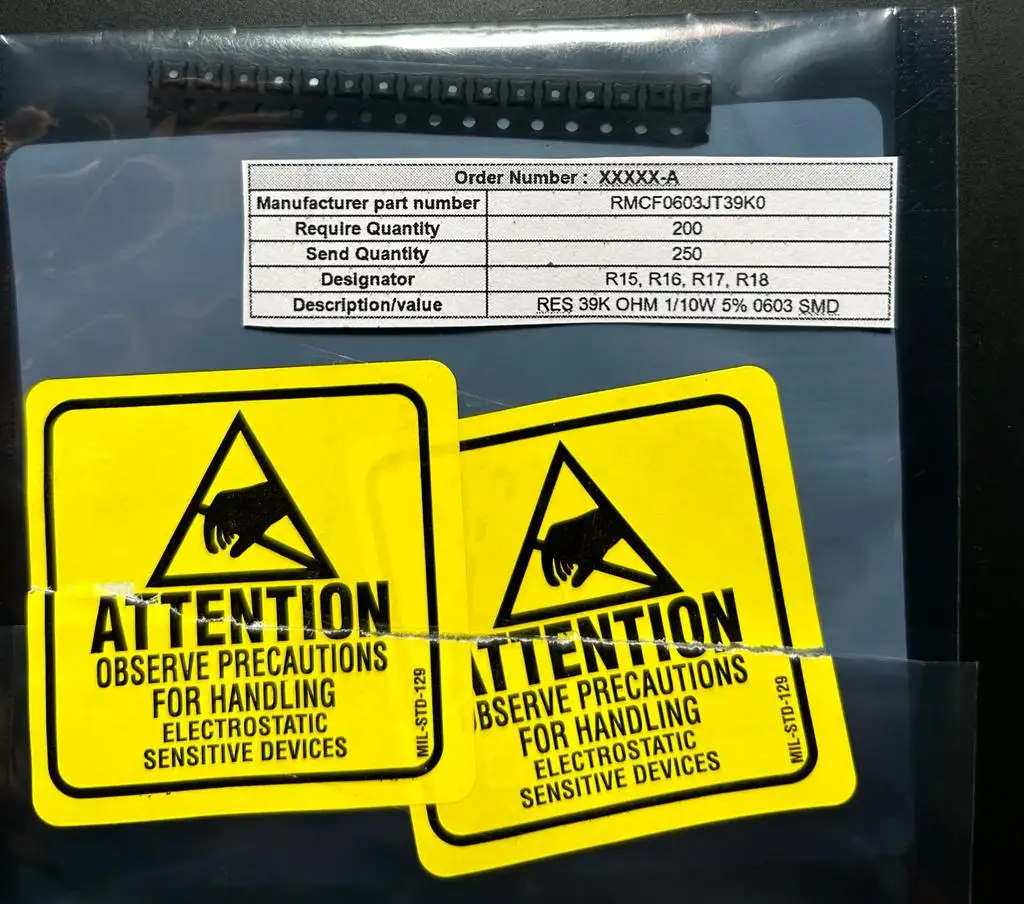 - Mention Essential Information: Ensure the Designator, Manufacturer Part Number (MPN), and quantity are clearly labeled on the ESD bag or packet.